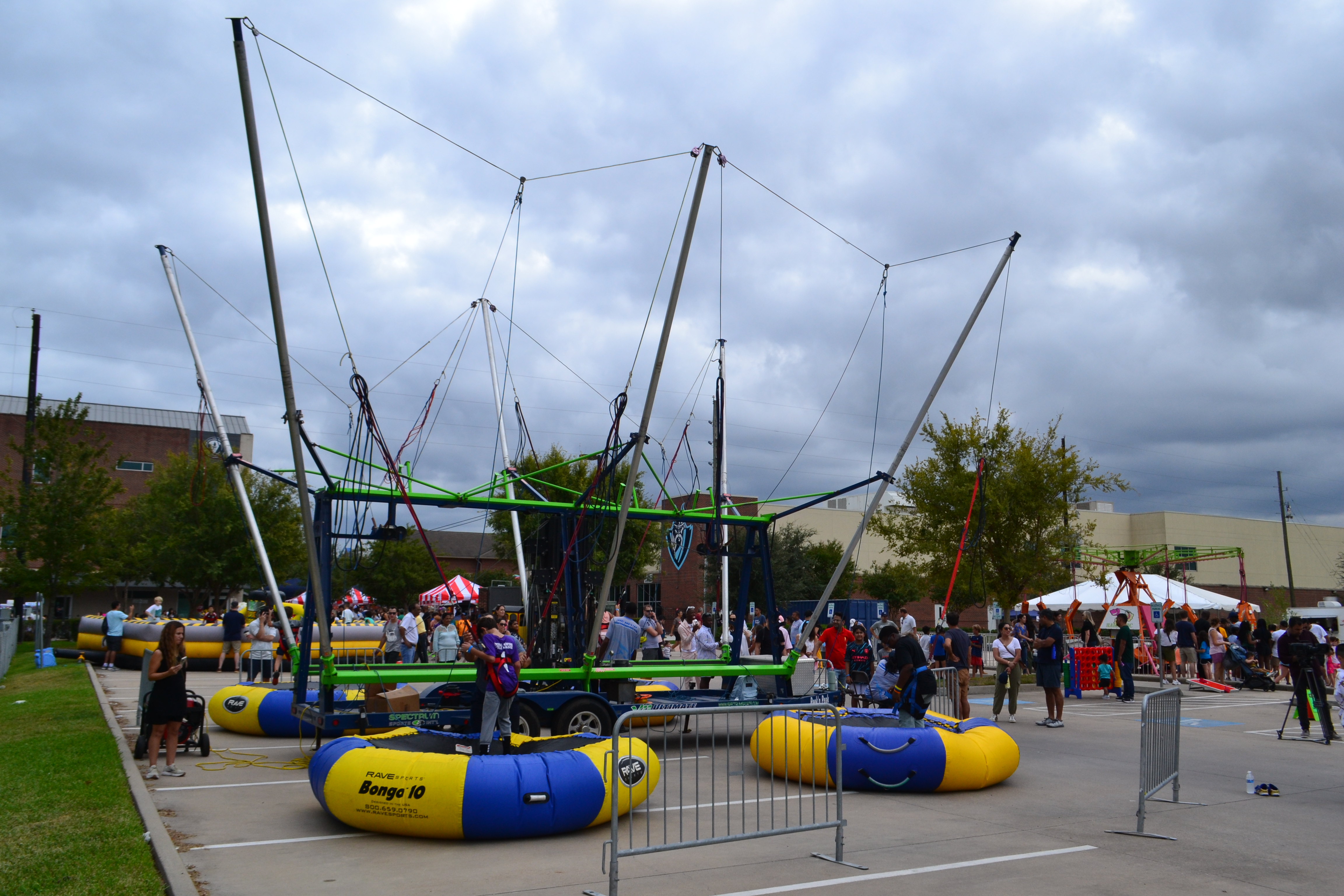 Combines the sensation of trampolining with the added element of bungee cords for extra lift. The result? A high-flying experience ideal for adrenaline junkies and more adventurous event guests. This one’s a favorite among our amusement and Carnival ride rentals! Participants strap into a harness attached to bungee cords and propel themselves high into the air, performing flips, twists, and other gravity-defying stunts they can’t wait to post to their socials. Invite folks to enjoy the feeling of weightlessness—while remaining fully secured and supervised by our trained staff. Book State Inspected, clean and maintained Carnival Rides in Houston with Texas Jump N Splash.